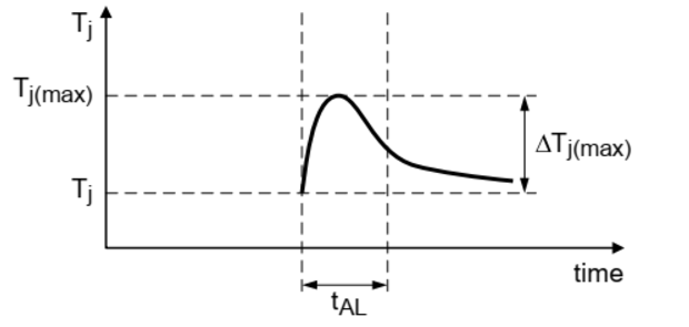 MOSFET的单次雪崩事件的失效机理是由于结点温度超过了最大温度限值,持续的时间一般在μs量级。在这种情况下,MOSFET会产生灾难性的损坏。如下图中,如由雪崩事件导致的瞬时温度超过了推荐的限值,热量不足以传递到芯片引线框和封装体,器件的风险增高。为了达到最佳的稳定性,这里的限值是由最大温度降额而来。