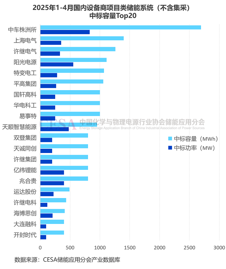 在如此澎湃的发展势头下,各家企业竞逐前列。接下来,我们将通过详细数据,一窥2025年1-4月中国新型储能招投标市场的竞争格局。
