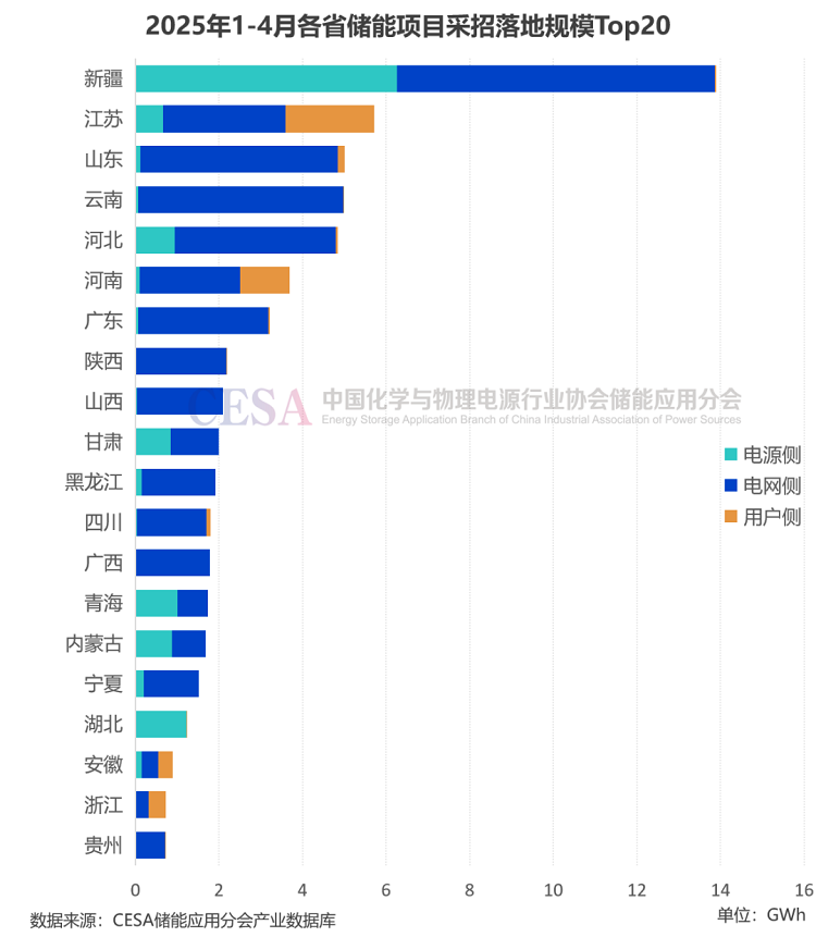 山东采招落地2.42GW/5GWh,居全国第三,主要为电网侧储能项目。