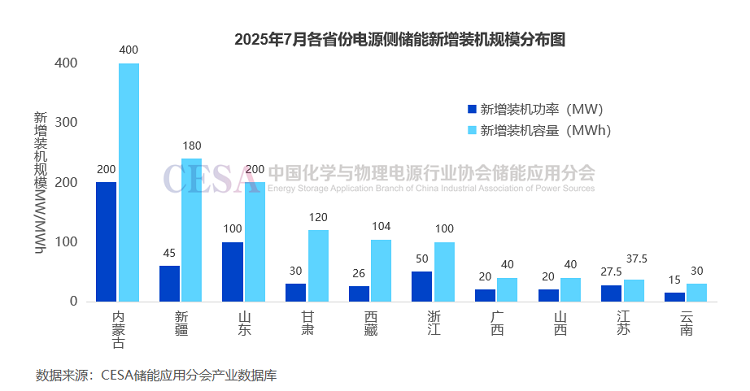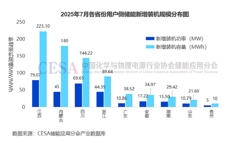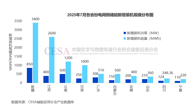 从省份分布来看,7月全国共有24省份新增投运新型储能项目,其中5省新增装机容量规模超1GWh。