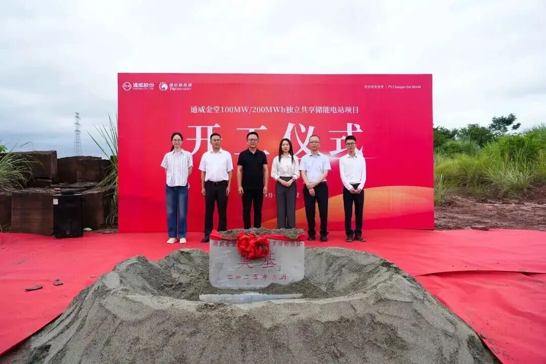 2025年2月,通威子公司通威新能源有限公司(简称“通威新能源”)与四川成都金堂县政府签署“源网荷储一体化”建设暨150MW/300MWh共享储能项目。6月,金堂项目公司通威新能源科技(金堂)有限公司成立,注册资本为4000万元,通威新能源占股70%。9月,项目正式开工建设。