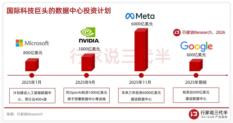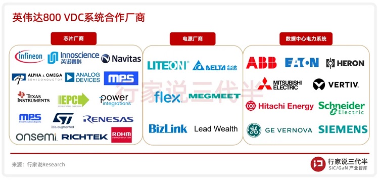 从英伟达公布的合作名单来看,第三代半导体与800 VDC供电架构是双向奔赴,碳化硅和氮化镓将成为新一代AIDC的关键技术。