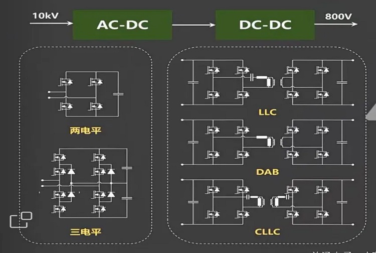 据矽迪半导体介绍,固态变压器的输入整流级通常采用级联H桥方案,而高频隔离级通常采用DAB方案或者LLC方案等。