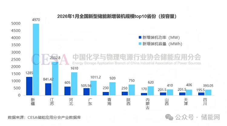 从各省份新增装机规模来看,1月共有26省份新增投运新型储能项目,多个省份新增装机规模达到GWh级别。