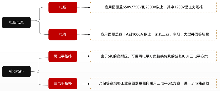 目前来看,SiC技术在变频器领域的应用已呈现多点开花的局面,其在电压电流、封装形式等方面,既延续了传统工业领域的部分特征,也结合变频器的应用需求形成了独特的技术侧重。