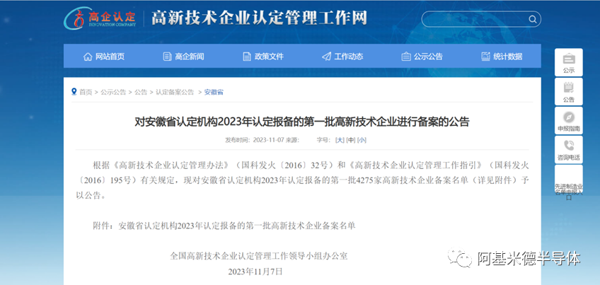 近日,根据科技部、财政部、国家税务总局《高新技术企业认定管理办法》(国科发火〔2016〕32号)、《高新技术企业认定管理工作指引》(国科发火〔2016〕195号)的有关规定,经审核,我司合肥阿基米德电子科技有限公司成功通过国家高新技术企业认定。