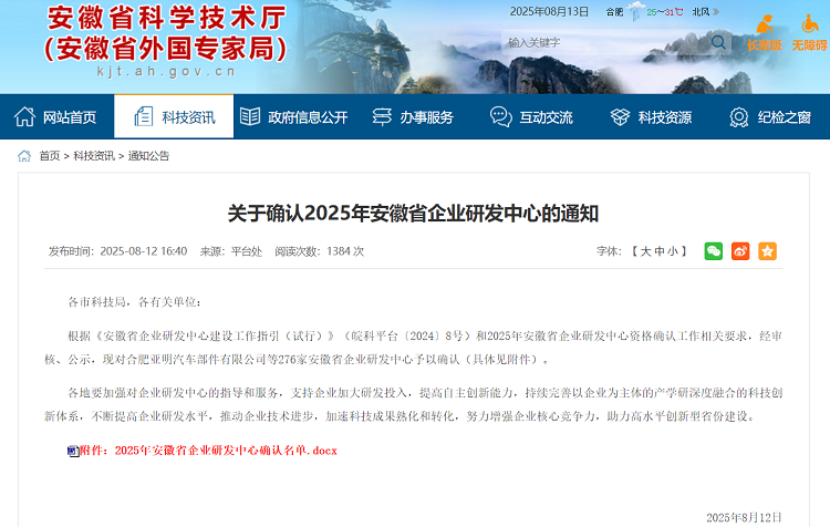 2025年8月5日,安徽省科技厅公示省级企业研发中心认定名单,合肥阿基米德电子科技有限公司凭借半导体领域技术硬实力成功入选。继上月获评“合肥市企业技术中心”后,企业再获省级创新平台认定,标志着阿基米德半导体在功率半导体技术自主化与产业升级进程中迈上新台阶。