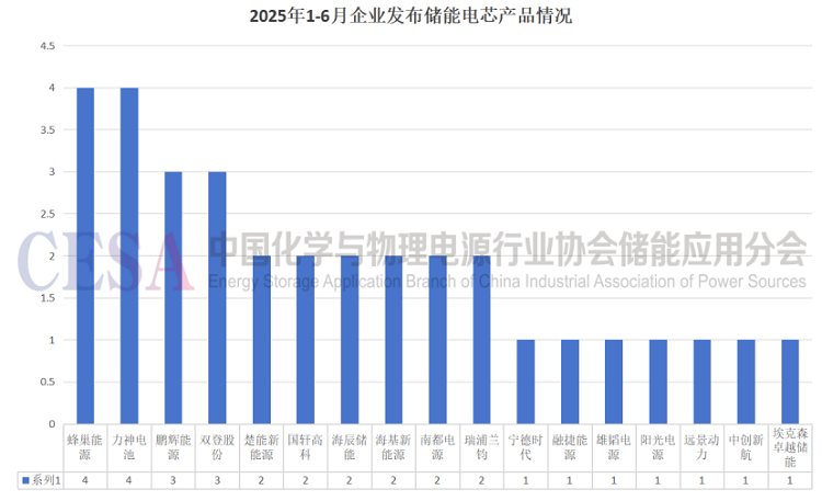 据CESA储能应用分会产业数据库不完全统计,2025年1-6月共计17家企业相继发布34款储能电芯新品。