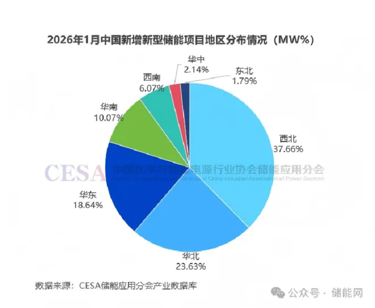 储能技术路线方面,1月新增投运储能项目中,磷酸铁锂储能技术并网总功率占比达92.87%,继续保持主导地位。
